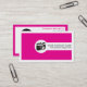 Photographer feminine business cards-hot pink, featuring a camera in the front and your initials/monogram on the back along a QR code for more info.