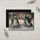 Este cartão de troca artístico apresenta dois adoráveis Pinguins Africanos em pé em uma borda rochosa. São aves aquáticas, sem voo, cujas asas se tornaram nadadeiras. Cada um tem uma faixa preta e pontos pretos no peito. O padrão das manchas é único para cada pinguim, assim como as digitais humanas. Eles têm glândulas cor-de-rosa sobre os olhos e pés rosas e pretos.