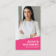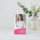 This modern vertical business card now features bold hot pink backgrounds on both the bottom front and the top back, paired with crisp white fonts and simple details for a sharp, contemporary look. The front includes your photo, name, and title or business name in a clean, polished layout that stands out against the vibrant pink.