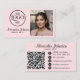 Elevate your beauty brand with this blush pink makeup artist business card. Featuring an elegant script font and a minimalist design, this template includes space for your business photo and a custom QR code for easy booking. Perfect for bridal makeup artists and salon professionals, it comes with pre-placed social media icons to showcase your portfolio. Customize this simple, modern template with your logo here to create a lasting, professional impression.