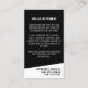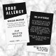 Cartão de Alerta de Alergia à Comida Vertical Contemporânea Preta. Projetado com uma aparência limpa e moderna, este cartão vertical de alergia à comida é perfeito para jantar em restaurantes ou assistir a eventos especiais. A frente apresenta um fundo preto em negrito com fontes brancas nítidas e um layout minimalista. No topo, a "ALERGY da COMIDA" aparece claramente para uma visibilidade fácil. Abaixo, há espaço para adicionar seu nome e uma lista de alergias à comida para que o funcionarios possa rapidamente rever o que evitar. Na parte inferior, uma área designada permite que o restaurante escreva o número da sua mesa, ajudando a cozinha a seguir seu pedido com cuidado. A parte de trás do cartão inclui uma breve e respeitosa nota ao funcionarios da cozinha sobre a gravidade de suas alergias, junto com o espaço para listar um contato de emergência. Simples e profissional, este cartão oferece tranquilidade com uma apresentação elegante — perfeita para manter as coisas seguras e, ao mesmo tempo, manter uma aparência refinada. Totalmente personalizável para atender às suas necessidades.