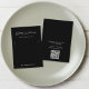 Placa de exibição de joias de colar preto na moda com seu nome ou marca mostrada em um script de assinatura branco chic. No verso, insira um endereço de URL para criar um código de QR digitalizável vinculado ao seu site, portfólio, perfil de mídia social, etc., fazer fácil para os clientes explorarem sua marca e se conectarem a você.