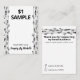 Se você está procurando uma maneira simples de exibir suas amostras de sabão e está atrás de um design nítido e limpo, então essa placa preta e branca é uma forma excelente de mostrar seus sabonetes feitos à mão para clientes potenciais na sua banca de mercado. O design tem uma corda vertical, coração e design de folha. para usar esta placa, corte cuidadosamente as linhas verticais no meio da placa com uma lâmina e régua, depois emperre a amostra de sabão, mantenha-a no lugar com fita adesiva de dois lados no verso.
