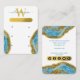 Um desenho abstrato de tinta azul-aquática mácula de cor dourada. Este elegante design de mármore líquido que combina tons dourados cria uma sofisticada peça de abstrato. Uma maneira simples e profissional de apresentar seu negócio. Ícones de mídia social incluídos na design desta placa de vídeo para uso. Um design de placa de ourivesaria de ouro de mármore azul ideal para um designer de joias. Personalize seus detalhes para criar seu próprio cartão de visita exclusivo.
