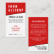 Cartão De Visita Placa de segurança da Cozinha Alérgica da comida