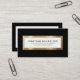Faça uma declaração com esses cartões de visitas elegantes e profissionais de planejamento imobiliário preto e ouro. A frente da placa apresenta uma janela branca moldada em ouro metálico escovado, exibindo seu nome, título e nome da empresa em um fundo preto sólido. A parte traseira da placa inclui as informações de contato em uma janela branca com sotaques de ouro em um plano de fundo preto. Esses cartões de visitas são perfeitos para advogados de planejamento imobiliário, planejadores financeiros ou outros profissionais do setor financeiro e jurídico.