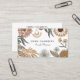 Cartões de visitas de planificador de eventos florais florais modernos com elementos e folhas florais verdes e castanhos. Adicione as informações de contato e as mídias sociais à parte traseira da placa, em branco.