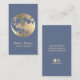 Cartões de visitas modernos de planejamento de eventos azuis e elegantes da Lua Dourada.