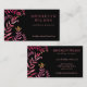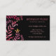 Cartão De Visita Planner de Casamento Preto com Folhas Rosa