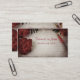 Cartões de visitas profissionais com uma fotografia floral bonito no outono. Papel de carta revestido desbotado e uma caneta sentada em cima com algumas bonito flores vermelhas e folhas verdes colocadas ao redor das bordas. Personalize com seus detalhes comerciais em uma fonte vermelha e arrojada.