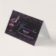 tarjeta plegável personcon datos personales del negociales la parte atrás, textura negra y brillo multicolor.