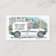 Cartão de visita de serviços de canalização com imagem divertida de uma carrinha branca do Plumber. Adicionar código QR para o seu site.