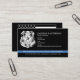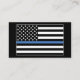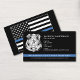 Este design apresenta um tema de bandeira da polícia com uma faixa azul fina. Personalize com o nome, a posição e as informações de contato do polícia oficial, xerife, capitão, chefe ou qualquer funcionário que trabalhe no departamento de polícia.