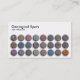 Um modelo de cartão de negócios com um arranjo ordenado atraente de pontos ou botões circulares com um bisel 3d e efeito de sombra gota, cada um com uma textura rochosa diferente (todos diferentes). Detalhes da empresa na frente com nome e detalhes de contato no verso em branco sobre um fundo verde escuro. As cores também podem ser mais personalizadas. Adequado para muitos tipos de negócios, embora especialmente apropriado para empresas relacionadas à Geologia, mineração, perfuração, etc