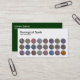 Um modelo de cartão de negócios com um arranjo ordenado atrativo de pontos ou botões circulares com um efeito bisel 3d, cada um com uma textura rochosa diferente (todos diferentes). Detalhes da empresa na frente com nome e detalhes de contato no verso em branco sobre um fundo verde escuro. As cores também podem ser mais personalizadas. Adequado para muitos tipos de negócios, embora especialmente apropriado para empresas relacionadas à Geologia, mineração, perfuração, etc
