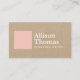 Um cartão de visita moderno com um simples quadrado rosa junto com seu nome ou nome comercial para uma estética minimalista que permanece profissional e limpa. Impresso a tinta branca em papel kraft para estética artesanal. Esta placa de lado duplo oferece ampla margem para suas informações de contato no lado de trás. Perfeito para profissionais criativos como escritores freelance, blogueiros, designers, estilistas e muito mais. Design Studio design por 1201AM | www.1201am.com