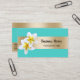 Elegante Plumeria Floral Beauty Salon Spa Turquoise e Cartões de visitas Dourados.