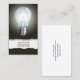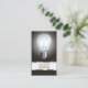 Uma lâmpada brilha brilhante sobre um fundo preto de abraço. Esse design é especialmente adequado como cartão de visita para eletricistas, técnicos ou das indústrias de eletricidade e iluminação. Personalize o seu com uma escolha de diferentes bolbos e fundos coloridos.