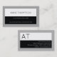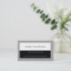 Seu nome e profissão em estilo de letra fino em um quadrado preto e branco, e um fundo de cinza... um design clássico e moderno para ajudá-lo a promover seu negócio
