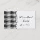 Este design de cartão de visita é certo atrair a atenção e ajudá-lo a estar para fora na multidão. Uma parte corajosa dos artigos de papelaria ou do promocional pode ser uma grande ferramenta da propaganda para seu negócio. Use-os você mesmo, dê-os aos empregados, ou use-os como o cliente dá-aways. Este design tem um fundo que seja branco com um teste padrão preto e branco do houndstooth. Aperfeiçoe para todo o negócio mas especialmente excelente para o salão de beleza nupcial, planeamento wedding, planeamento do evento, restauração, salão de beleza do prego, termas, jóia, cosmetologist, forma, consultante de beleza, ou quando você gostaria de um toque elegante.