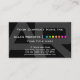 Cartões de visitas elegantes em preto elegante e em cinzas com uma fileira de bolinhas vibrantly coloridas. Monograma customizável no fundo.