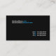 Cartão de visita preto elegante com destaques azuis. O olhar Uncluttered evoca o profissionalismo e a faculdade criadora. Excelente para vários profissionais no negócio, assim como as indústrias criativas, que preferem a elegância e o estilo simples nos materiais promocionais. Papel superior ou luxuoso recomendado para o melhores olhar e sensação.