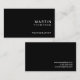 Cartão de visita preto minimalista profissional que apresenta as suas informações no estilo de letra branco e cinza moderno. Perfeito para designer, fotógrafo, consultor e muitas outras profissões.