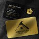 essas estéticas de luxo, cartões de visitas de dois tons são chamadores de atenção, com seu design único e moderno, enquanto se sentem refinados / sofisticados e masculinos.. excelente para empreiteiros privados ou comerciais de vários campos. A parte traseira dessas placas apresenta uma base simulada de folha falsa de 14 k clássica, com silhuetas gráficas pretas a jato, acompanhada por duas linhas de texto abaixo. A face das cartas, no entanto, é preta com cores brancas, platinadas e ouros, além de uma folha de papel dourada, com uma simples silhueta de forma mínima de casa, com uma silhueta gráfica de martelo preto a jato posicionada no seu núcleo