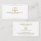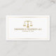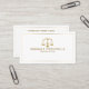 Simples e elegante advogado profissional minimalista na cartão de visita de lei. Símbolo de justiça em escala Dourada com uma estrutura de borda dourada sobre fundo personalizável branco.