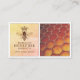 Um elegante cartão de visita de produtos à base de mel que inclui uma abelha real e uma coroa numa lavagem a aquarelas, com uma face elegante e um pente de mel ouro. Perfeito para apiário, apicultor, fabricante de sabão, fabricante de velas, fabricante de produtos de skincare, ou qualquer pessoa que vende produtos de mel de qualquer tipo.