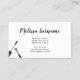 A ilustração divertida de Destei de vários produtos de maquiagem, como um rímel, um batom vermelho, pó com espelho e uma escova de maquilhagem. Na frente lê-se "maquiador" em lindas fontes de caligrafia e atrás há áreas de texto personalizáveis para nome, endereço e outras informações. Projetado para maquiadores, cosmetologistas e belicistas em mente.