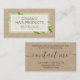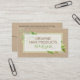 Esses cartões de visitas são para produtos feitos à mão como máscara de cabelo e soros, xampu e condicionador. A design apresenta uma estrutura moderna em camadas com folhas e folhagem abaixo, sobre um fundo Kraft.