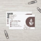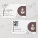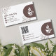 The trendy front design features a modern image of a white coffee cup or mug, surrounded by simple line art images of coffee beans. To the left is a personalized option to add your company name and add contact information (telephone number,mailing address, website) in modern brown text and icons. Flip over to the back and change the QR Code URL (add url to ordering menu or send customer to a specific website), enter business instagram and facebook usernames, and add company email address. Browse our matching products, such as loyalty cards.