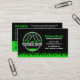 Promote your lawn care or landscaping business with this sleek black and green business card, designed to give a professional and trustworthy first impression.
