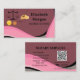 Stand out with this elegant and professional rose pink, gray and black mobile notary business card, perfect for loan signing agents, notary publics, and legal professionals. The front of the card showcases your name and notary title in clean serif typography, with classic justice-themed icons like scales and a fountain pen. The reverse side highlights your notary services, QR code for easy scheduling, office hours, NNA certification, and license number. Add your personal contact info, website, and credentials to create a powerful brand identity.