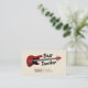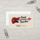 Um simples cartão de visita com uma ilustração de um violão vermelho elétrico e informações de contato. Ideal para professor de música ou aulas, intérprete assistente, músico, etc.