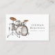 Um conjunto elegante de tambores ilustrado, músico baterista e cartão de visita de professor de música. Estilo ilustrado simples e moderno.