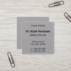 Este simples design de cartão de visita apresenta um primeiro e sobrenome, um nome comercial, um título profissional e informações de contato que podem ser personalizadas. Cartões de visitas como estes podem ser utilizados por um profissional, como um médico ou um médico.