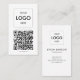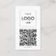 Cartão de visita minimalista apresenta logotipo e código qr.