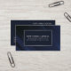 Cartão de visita profissional com fundo azul gradiente com quadro prateado na frente e tipografia serif clássica em ambos os lados. Este cartão de visita moderno oferece detalhes sobre o nome, os serviços e o endereço da empresa, juntamente com o seu nome, título, número de telefone e endereço de correio eletrônico com pequenos ícones de classe. Para adicionar mais elementos à placa, como logotipo, gráfico, slogan ou mais informações, você pode usar a ferramenta design fornecida para personalizá-la ainda mais. Esse cartão de visita é ideal para qualquer negócio ou ocupação. Vários estilos de papel disponíveis, com cantos arredondados opcionais.