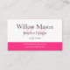 Este Cartão de visita profissional de monograma rosa e branco seria ideal para as mulheres designer de moda, empresa de design interior, pintor, decorador, planador de eventos, cosmetólogo, cabeleira, estagiário, criador, criador, gerente de Marcas, instrutor de Malhações, consultor de relações públicas, Beauty Spa, terapeuta ocupacional, planejador de casamentos, analista de pesquisa de mercado, intérprete, / Tradutor, Advogado, Advogado, Solicitor, Caterer, Catering e muitos outros profissionais. O texto pode ser alterado em fonte, cor, tamanho e localização clicando no botão 'PERSONALIZAR TI'. Este cartão de visita está disponível em tamanhos e/ou cores diferentes. Obrigados de visita. Outras cores disponíveis neste design