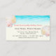 Cartão de visita em tons de praia de Shell e de aquarela, de cor azul-aqua, cor-de-coral rosa e ondas brancas contrastantes. Ideal para locação financeira ou arrendamento de imóveis ou casas de férias por mar. Personalize com seu nome, endereço, nome, site, número de telefone neste cartão de visita do estilo praia sea. Perfeito para alugar empresas de férias e casas costeiras ou costeiras. Pintura a aquarela manual e design por Sarah Trett para www.mylittleeden.com