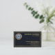 No verso, o logotipo dourado está no topo, seguido do seu nome prestigiado, dos contatos e de uma opção de slogan para divulgar seus serviços.