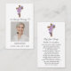 Cartão De Visita Purple Flower Cross Photo Funeral Prayer Card