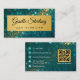 The shimmering teal background and metallic gold accents create a glamorous, high-end look that reflects your artistry and attention to detail.
