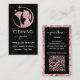 A pink Rose Gold Maid glitter Silhouette and elegant script calligraphy and qr code with black background for cleaning service business card gives it a luxury touch. Add your name, email, and other detail. this card is fully customizable. #cleaningbusinesscard ##luxurycleaningservices #maidSilhouette