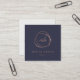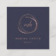 Cartões de visitas azuis impressionantes de meia-noite em forma quadrada única deixam uma impressão moderna. O lado frontal apresenta um elemento abstrato em dourado falso rosa, rodeando suas iniciais ou monograma em um roteiro de caligrafia moderno. Personalize com dois campos de texto personalizados abaixo para seu nome e título ou nome comercial. Adicione seus detalhes de contato do cheio ao lado inverso. Adequado para qualquer ocupação; exemplo mostrado para cabelos e maquiadores. NOTA: NÃO HÁ FOLHA DE OURO NESTE PRODUTO. O efeito ouro-rosa é criado usando sutis variações de cor que imitam o aspecto da folha.