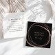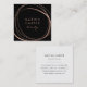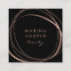 Cartões de visitas pretos simples e surpreendentes em uma forma quadrada única deixam uma impressão moderna. O lado frontal apresenta um elemento abstrato no faux rosa gold, circundando dois campos de texto personalizados para seu nome e título ou nome comercial. Adicione seus detalhes de contato do cheio ao lado inverso. Adequado para qualquer ocupação; exemplo mostrado para cabelos e maquiadores. NOTA: NÃO HÁ FOLHA DE OURO NESTE PRODUTO. O efeito ouro-rosa é criado usando sutis variações de cor que imitam o aspecto da folha.