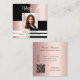 Um fundo clássico de blocos de cor preto e rosa dourado. Personalize e adicione sua foto e texto na frente. Fundo: Rosa dourado. Modelos para o seu nome, título, número de telefone, correio e endereço do Web site, o seu próprio código QR para o Web site ou conta de multimédia social.