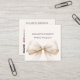 Um creme macio, fundo bege, decorado com um arco. Anterior: Modelos para o seu nome, título, número de telefone, correio e endereço do Web site, código QR para o seu Web site. Ícones do Facebook e Instagram.